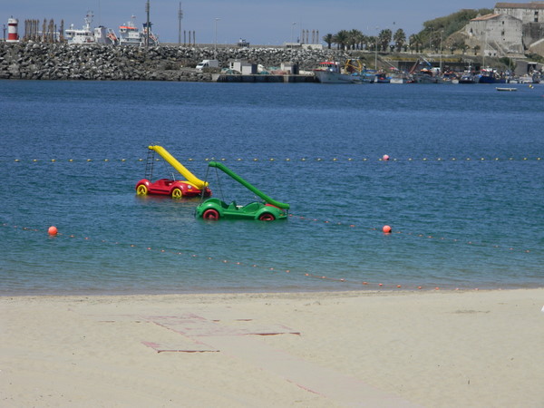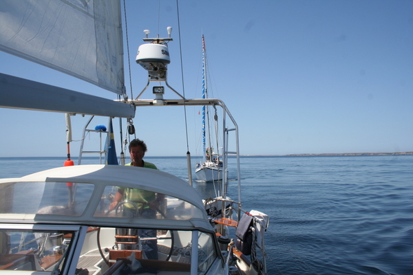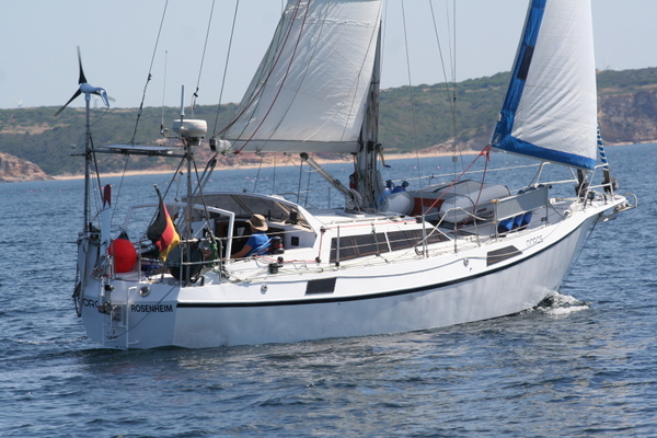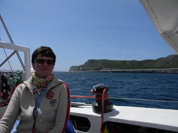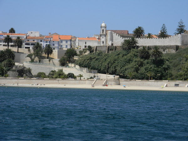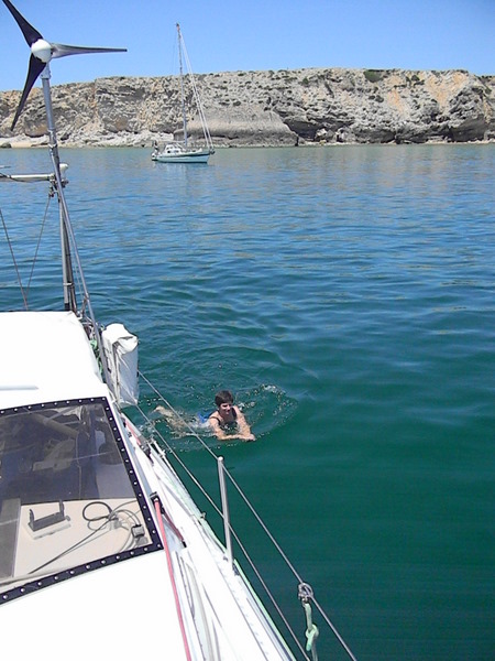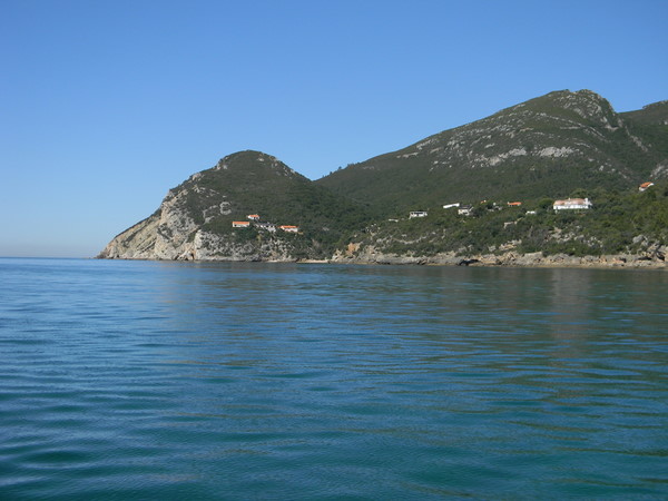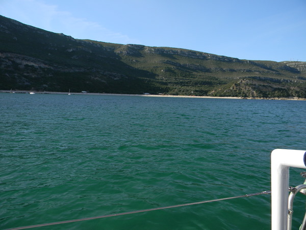 Abschied von Cascais und damit auch von Lissabon. Doch wir wollen weiter. Unser Ziel ist Sesimbra, knapp 30 Seemeilen (ca. 55 km) von Cascais entfernt. Als wir dort ankommen, ist der Hafen klein und voll und auf dem Ankerplatz, der in unserem schlauen Buch verzeichnet ist, findet gerade eine Regatta statt. Also weiter bis zum nächsten Ankerplatz in der romantischen Bucht von Arrábida, nur ein paar Meilen entfernt. Einmal im kalten Wasser ums Schiff schwimmen – herrlich! Wir fühlen uns so frei wie schon lange nicht mehr! Es gibt noch ein paar weitere Ankerlieger, die sich aber bis zum Abend verabschieden. Nachts erfahren wir dann warum: Da die Hänge rings um die Bucht steil sind, kommen nachts heftige Fallböen und schütteln uns durch. Morgens ist alles wieder friedlich und wir segeln weiter. Das nächste Ziel heißt Sines – der letzte Hafen, bevor wir die Algarve erreichen. Kurz nach unserer Ankunft trudeln auch Sven und Lisa mit ihrer Randivåg ein – wir hatten sie in einem ganz anderen Hafen vermutet und freuen uns alle sehr.