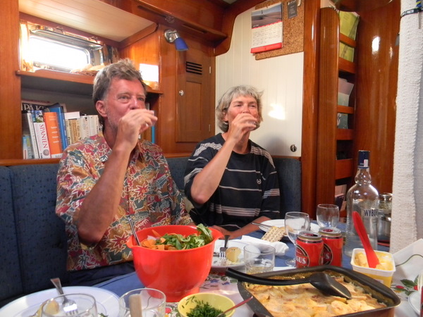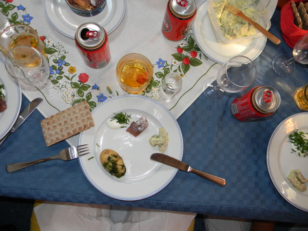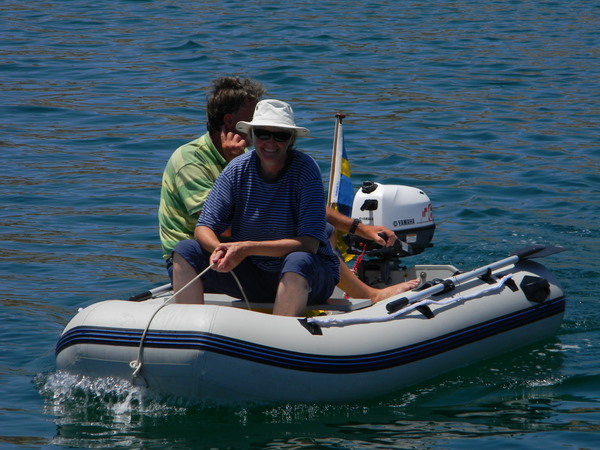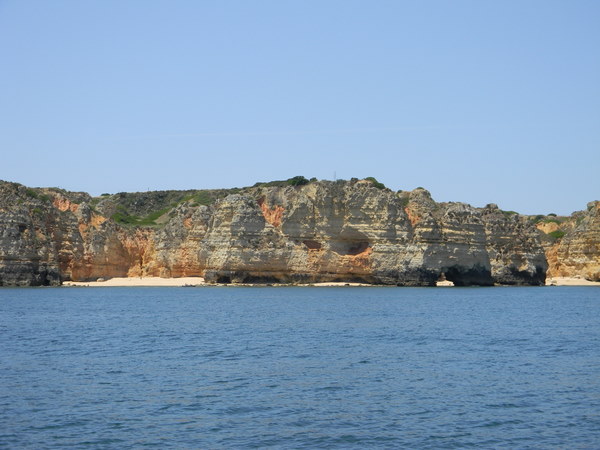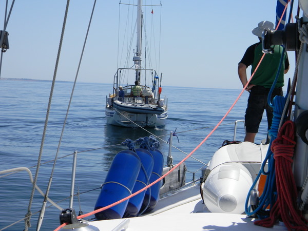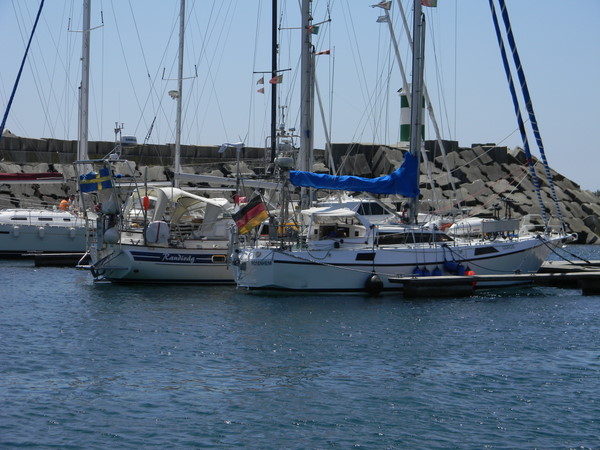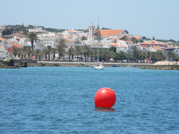 In der wunderschönen Bucht von Sagres, umgeben von Steilklippen, ist das Wasser ziemlich kalt – 16° C! Trotzdem schaffe sogar ich es, eine Runde ums Schiff zu schwimmen! Der Schwell nimmt stetig zu und wir schaukeln von einer Seite auf die andere. Am 2. Tag dann beschließen wir weiterzufahren. Die Bonita ist schon weg, die hatten die Schaukelei schon nach einem Tag satt. Wir haben Probleme den Motor zu starten, da die Batterie nicht so ganz will. Als er dann endlich anspringt, geht er nach kurzer Zeit von selbst wieder aus. Sven, der mit seinem Beiboot zu uns rüberrudert, meint, es ist wahrscheinlich durch die ständige Schaukelei Luft in der Dieselleitung, die erst den Ausweg finden muss. Doch der Batterie fehlt die Kraft und plötzlich meldet sich auch noch ein komisches Geräusch aus dem Motor. Wir lassen ihn aus und legen unter Segeln ab. Also Anker auf und los – wir sind ganz stolz, dass es so gut funktioniert! Auf der halben Strecke nach Lagos schläft jedoch der Wind ein und wir dümpeln nur noch. Die Randivåg, die uns nicht im Stich lässt, schleppt uns 2 1/2 Stunden bis kurz vor die Hafeneinfahrt von Lagos, wo wir von vorher gerufenen Helfern in Empfang genommen werden. Das letzte Mal wurden wir in Medemblik (Ijsselmeer) abgeschleppt – vor fast genau einem Jahr! Als wir uns bei Sven und Lisa bedanken, bekommen wir als Antwort “Dafür hat man Freunde” – es ist unglaublich schön! Und da Midsommar in Schweden, das genauso wichtig ist wie Weihnachten!, im Kreis von Freunden und Familie gefeiert wird, dürfen wir natürlich auch mit dabei sein. Es gibt traditionell Hering, neue Kartoffeln, Schnittlauch und vieles mehr, als Getränke stehen Bier und Schnaps am Tisch. Und vor jedem Schluck Schnaps gibt es ein schwedisches Trinklied – es wird viel gesungen an diesem Abend!