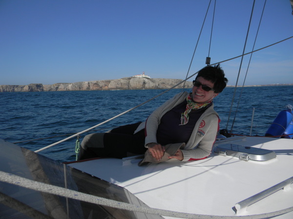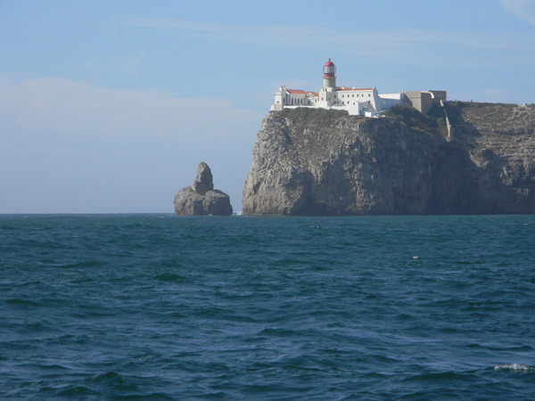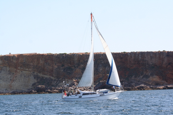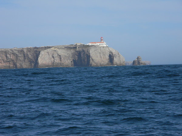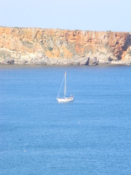 Doch dann geht es weiter Richtung Cabo de São Vicente, dem südwestlichsten Punkt des europäischen Festlandes. Endlich! In Sines haben wir ein deutsches Paar kennengelernt, die mit ihrer Bonita auf dem gleichen Weg wie Randivåg und wir sind. Da wir jedoch alle unterschiedliche Geschwindigkeiten haben, vereinbaren wir, dass wir alle 2 Stunden per Funk Kontakt zueinander aufnehmen. Die Randivåg erreicht als erste den Ankerplatz in Sagres kurz nach dem Kap. Ich möchte der Bonita Bescheid geben und rufe sie per Funk an. Die Stimme am anderen Ende kommt mir zwar ein bisserl komisch vor, aber darüber mache ich mir keine großen Gedanken, könnte ja an der Funkverbindung liegen. Dass Peter aber unbedingt Englisch reden will, macht mich dann schon stutzig. Als er dann noch fragt, wie genau wir denn heißen, ist mir klar: das ist nicht die Bonita, mit der ich sprechen wollte! Ich erkläre dem unbekannten Funker, dass ich mit der Segeljacht Bonita aus Deutschland sprechen will, woraufhin er mir erklärt, er sei der Motortanker Bonita aus Griechenland! So ein Zufall, mit zwei Bonitas ums Kap zu fahren! Im Nachhinein stellen wir fest, dass dieser Tanker 246 m lang und 42 m breit ist. Zum Glück hatten wir ihn zuvor gewarnt, dass es ums Kap mit 15 und mehr Knoten bläst. Jetzt können wir uns auch seine Lache am Funkgerät erklären…
