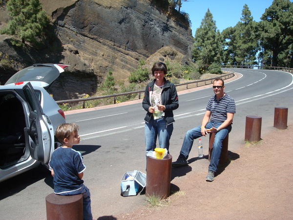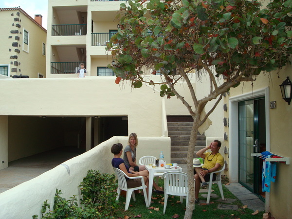 Lange haben wir uns auf unseren Besuch gefreut. Jetzt ist unser Besuch 75 km südlich von uns und wir noch im Norden. Anhaltende starke Nordwinde (um 20 Knoten) und Evas blauer Zeh hindern uns, in Teneriffas Süden vorzustoßen. Deshalb besuchen wir Karin, Dieter und den kleinen Dominik mit dem Bus, um gemeinsam auch ein Auto für 2 Wochen zu leihen.