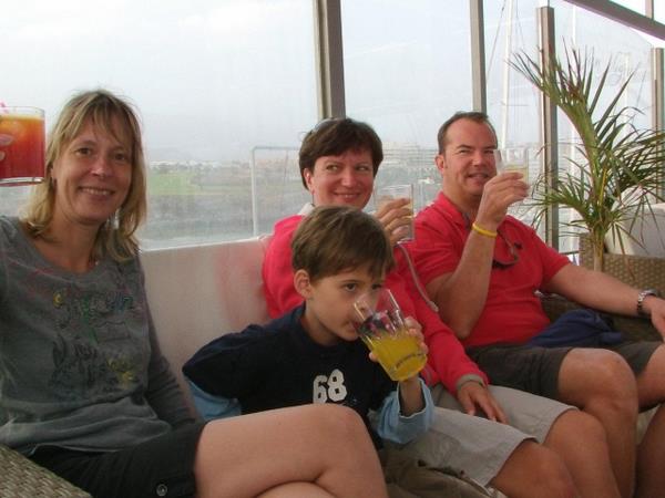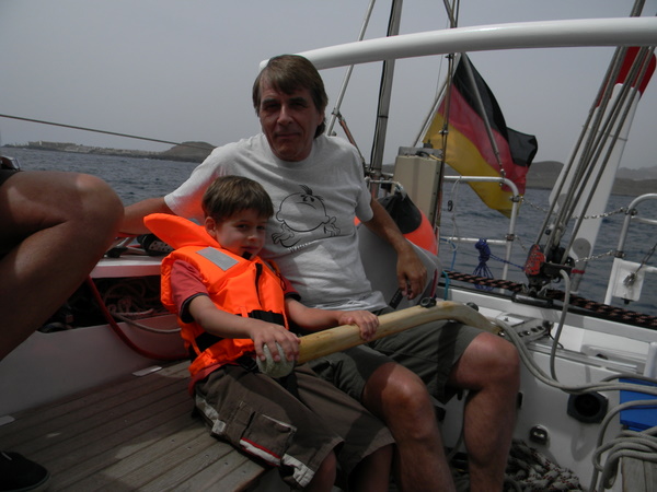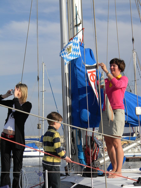 Höhepunkt soll der Segelausflug werden, wir haben Wind und Wellen beobachtet – es ist der ideale Tag: Damenwind und fast keine Welle, da sollte Freude aufkommen bei den Landratten! Leichtmatrose Dominik wird als erster auf die Planken gestreckt. Dann geht´s auch der Mami nicht mehr so gut, schließlich müssen wir – auch wörtlich – abbrechen. Dieter wäre gern bis zum Horizont gesegelt und noch weiter – Freiheit spüren tut so gut! Viel zu früh sind wir wieder im Hafen. Segeltage sind anstrengende Tage, und so gibt es Brotzeit an Bord.