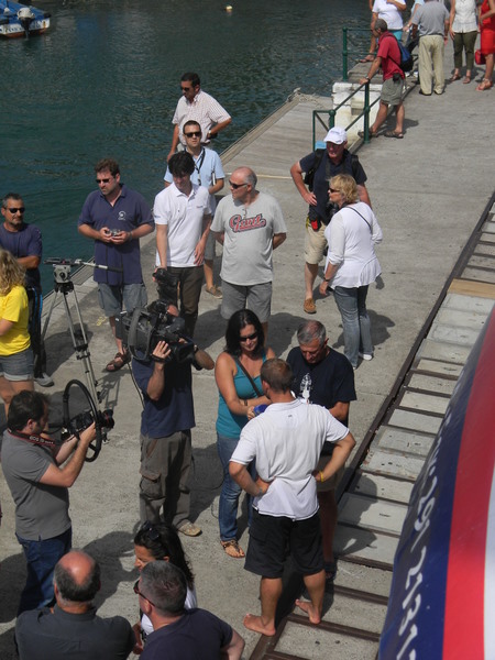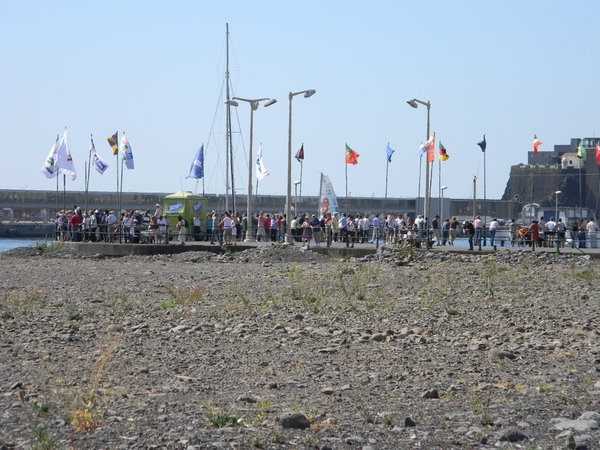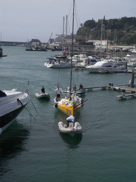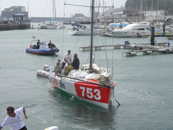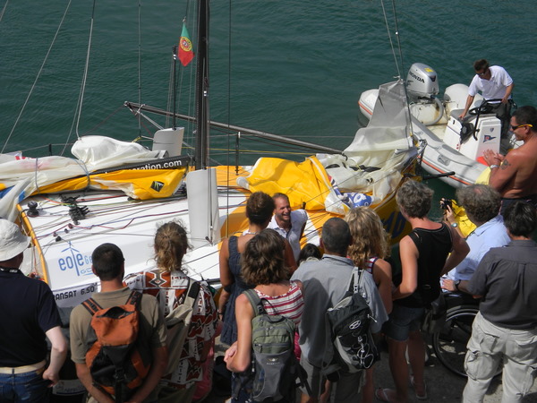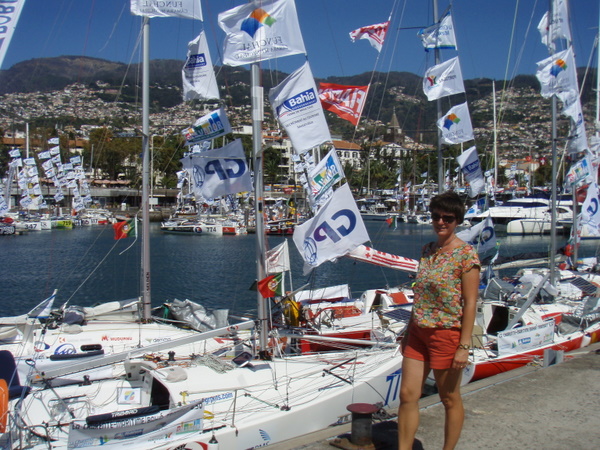 Dann gab es noch die Mini-Transat: 80 mutige Männer und Frauen, die auf nur 6,5 m  langen aber schnellen Segelbooten mit Zwischenstopp auf Madeira von La Rochelle in der Biskaya bis Salvador de Bahia in Brasilien segeln. Und das alleine! Nach etwas über 8 Tagen auf See erreichten die ersten am 4. Oktober Madeira. Auf dem dritten Platz der Deutsche Jörg Riechers. Starker Wind pustet sie geradezu in die Funchal-Bucht. Fassungslos sahen wir dann auch, wie der Deutsche beim Herunternehmen der Segel die Kontrolle über das Schiff verliert und mit dem Bug an den Wellenbrecher schlägt. Da diese Boote über keinen eigenen Motor verfügen, werden sie nach dem Hereinkommen von den Marineros in ihren Schlauchbooten an den Steg geschleppt. Überglücklich steigen die ersten 3 an Land, werden mit Champagner begrüßt, müssen Interviews für Fernsehen und Zeitung geben und können endlich ihren Lieben in die Arme fallen. Wir fühlen mit! Schließlich haben wir ihnen am 13. Oktober nachgewunken, als sie sich wieder in ihren Nussschalen auf den Weg nach Brasilien machten.
