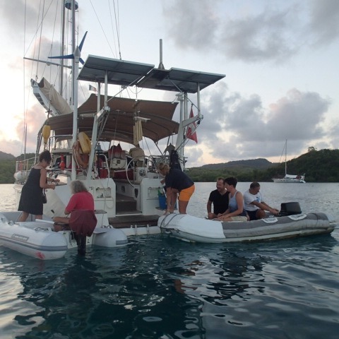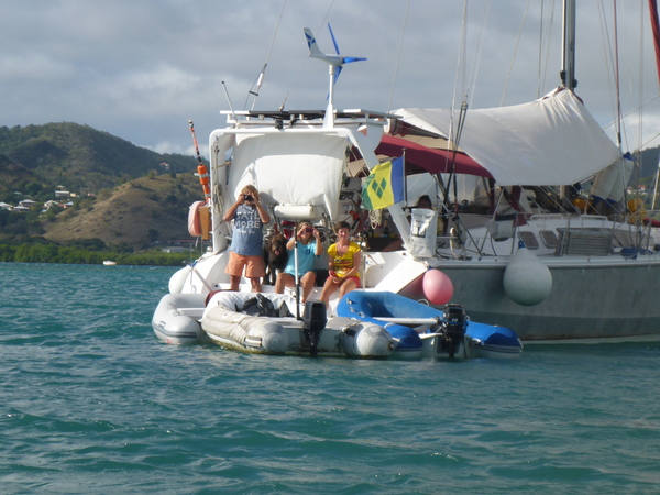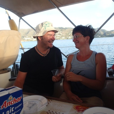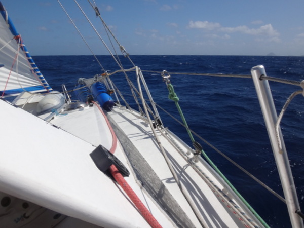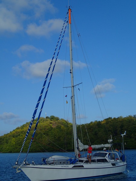 Um 6 Uhr früh am 5. März bei erstem Licht haben wir den Anker aufgeholt und mit leichtem Wind die Südspitze Grenadas umrundet. Gerade als wir die Hauptstadt passieren, setzt die morgendliche Funkrunde ein. Eine gute halbe Stunde wird über Wetter, evtl. Gefahren oder Besonderes sowie Soziales informiert. Über Funk habe ich mich von Freunden verabschiedet als die Nachricht durchkommt, dass in der vorigen Nacht auf der Insel St. Vincent eine Yacht von bewaffneten Piraten angegriffen wurde. Eine Person ist dabei getötet und eine weitere verletzt worden. Laut unserer Kalkulation würden wir an St. Vincent nachts vorbeisegeln. Aus diesem Grund legen wir unseren Kurs 8 bis 10 Seemeilen westlich von St. Vincent. Ein ungutes Gefühl bei der Nachtfahrt…. Aber nach 34 Stunden erreichen wir am Nachmittag die gut geschützte Bucht von Le Marin im Süden von Martinique. Von der Größe eines bayerischen Sees, aber gespickt mit Riffen und Untiefen und vielen Wracks, die davon zeugen. Unser erster Eindruck: ein Teil Europas in der Karibik. Es wird wieder in Euro bezahlt, die Supermärkte sind gut gefüllt und die Lebensmittel deutlich günstiger als in Grenada. In den Boulangerien freuen wir uns über krosse Baguettes und frische Croissants. Zusammen mit unseren österreichischen Segelfreunden von der Mauna Loa, Tifricat und von der Selivra, mit der wir hergesegelt sind, ist es wieder eine lustige Truppe.