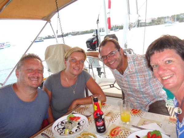 Martina und Dietmar laden uns zu einem leckeren Osteressen auf ihre Mauna Loa ein. Zuvor besuchen wir noch gemeinsam den Osterbasar in der TrueBlueMarina. Bei uns würde das Künstlermarkt heißen, denn der Bezug zu Ostern fehlt auch hier. Aber er ist trotzdem schön und wir treffen wieder ein paar bekannte Gesichter und finden auch die eine oder andere Deko für unser Schiff.