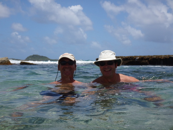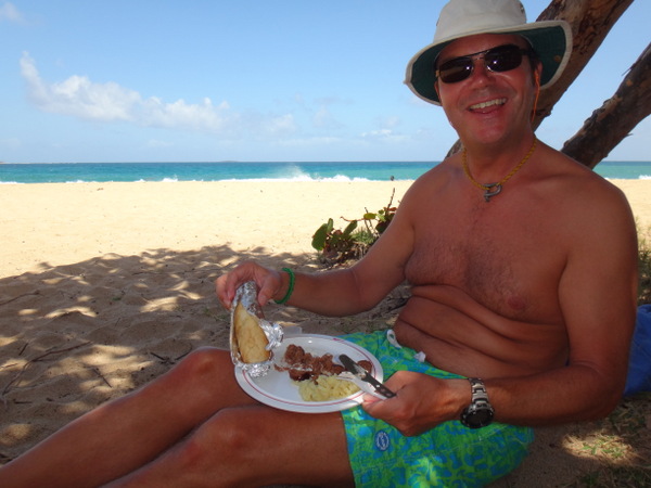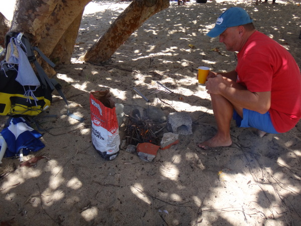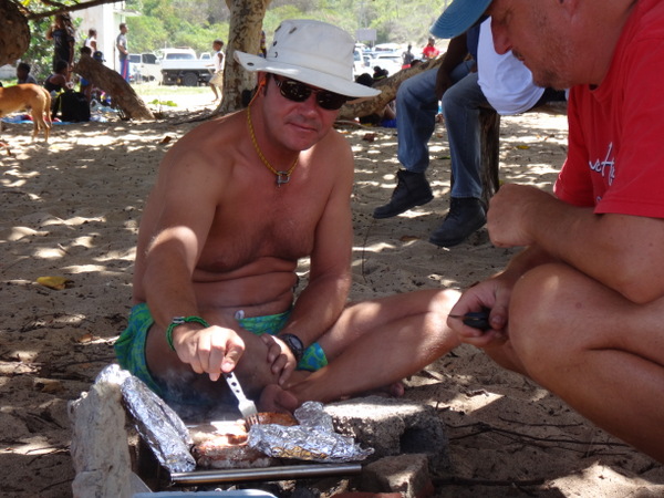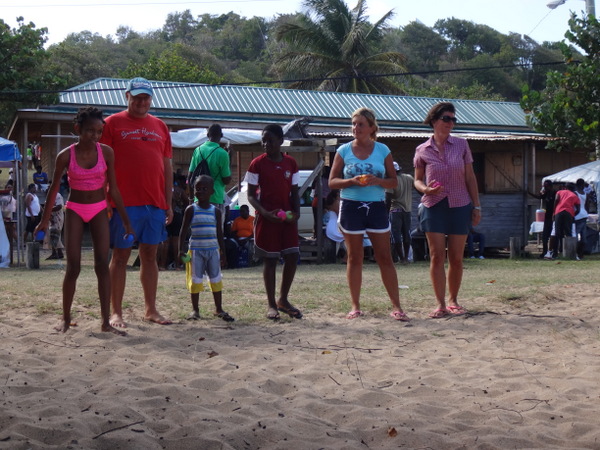 Höhepunkt des Osterfestes hier auf Grenada ist der Ostermontag, an dem am Bathway-Beach im Nordosten der Insel hunderte von Drachen in die Luft steigen. So heißt es zumindest. Wir haben uns ja schon unsere Drachen besorgt und nehmen gemeinsam mit Martina, Dietmar und Michael ein Taxi dorthin. Es ist noch nicht sehr viel los an diesem herrlichen Strand, der von vielen schattenspendenden Bäumen gesäumt ist und wir bekommen noch ein gemütliches Plätzchen unter einem Baum.