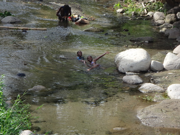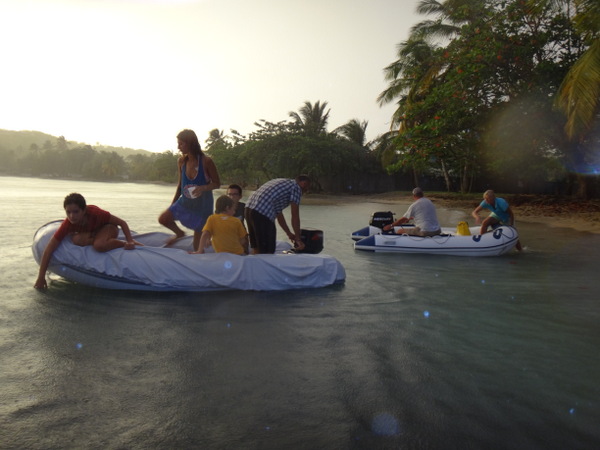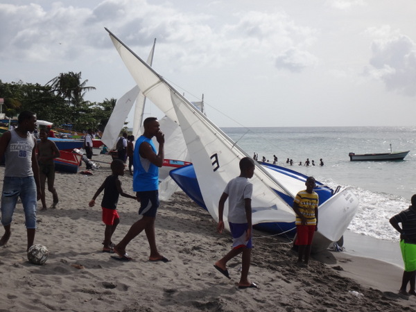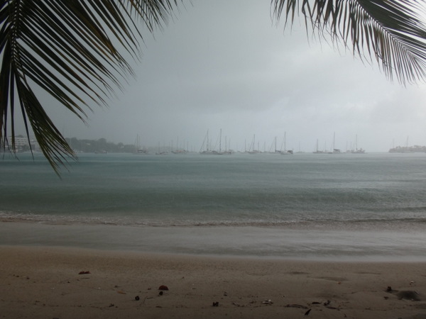 Die Zeit seit unserem „Umzug“ in die Prickly Bay haben wir voll genossen. Vom Schiff aus jederzeit ins Wasser springen zu können ist einfach herrlich. Fast jeden Tag sind wir mit dem Dinghy an den Strand gefahren, um uns dort mit Martina und Dietmar zu treffen und Softball oder Frisbee zu spielen. Zwischendurch haben wir zu viert auch noch den einen oder anderen Ausflug gemacht. So sind wir z.B. spontan an der Nordwestküste durch einen sozusagen öffentlichen Obstgarten gewandert, in dem man sich von allen Bäumen die Früchte pflücken darf. Und was gibt es Besseres als frische Mango, Grapefruit, Orangen und Papaya? Wir haben auch Sauteurs besucht, das eine traurige Geschichte hat: hier sollen im 17. Jahrhundert die letzten Kariben von einer hohen Felsklippe ins Meer gesprungen sein, um der Versklavung durch die Franzosen zu entgehen. Ein Kreuz markiert diese Stelle. Bei dieser Vergangenheit bekommt man schon eine Gänsehaut.