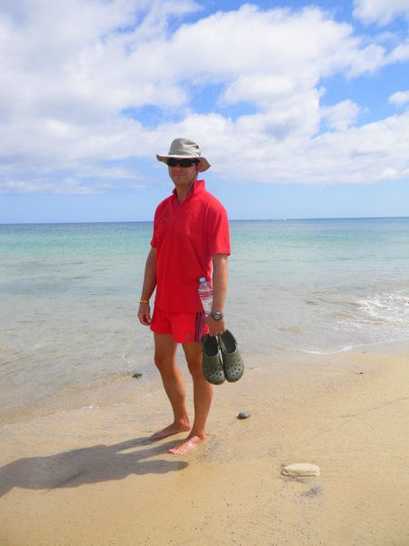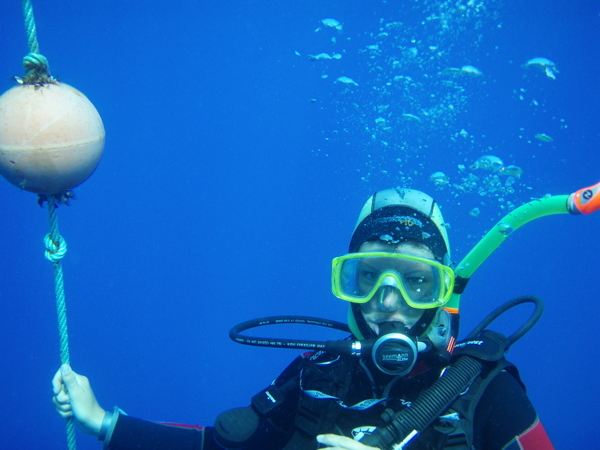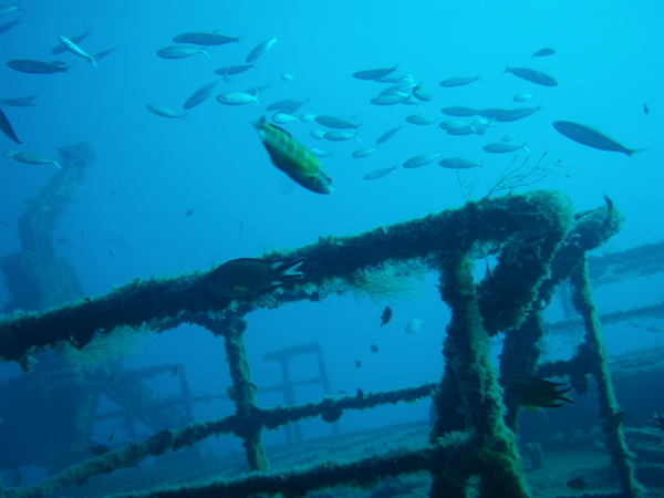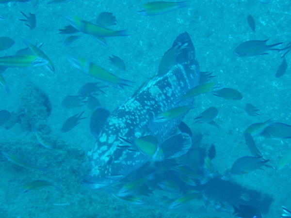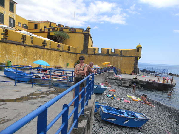 Porto Santo ist eine kleine Insel. Klein meint hier 11 km lang und beschauliche 6 km breit. Es gibt nur einen Ort, der allenfalls ein Städtchen genannt werden könnte. Trotzdem geht es gerade in der Hochsaison recht lebhaft zu, zu dieser Zeit werden aus 5.000 ständigen Einwohnern bis zu 20.000, die oft auch nur für einen Tagesausflug mit der Fähre von Madeira herüberkommen, den traumhaften Strand zu genießen, dem man eine heilsame Wirkung zuschreibt. Uns hat er auch gutgetan! So verging kaum ein Tag der Woche, an dem wir nicht wenigstens abends ein Bad nahmen. Doch eine Sache gab es nach Inselrundfahrt und Folkloretanz noch zu tun: Vor ca. 10 Jahren wurde die MS Madeirense vor der Küste versenkt. Sie war zuvor Fracht- und Passagierschiff im Linienverkehr zwischen Porto Santo und Madeira. Jetzt fühlen sich hier zahlreiche kleine und große Fische heimisch. Grund für uns, in einer kleinen Gruppe hinauszufahren und abzutauchen. Wracktauchen gehört für mich mit zu den spannendsten Dingen. Im glasklaren Wasser wird die Madeirense unter uns immer größer. Wir gleiten hinab auf bis zu 34 Meter und es ist alles ganz klar zu erkennen: Ruder, Propeller, aber auch die Decksaufbauten. Und in jedem neuen Gefilde gibt es einen Boss, der persönlich begrüßt werden will. Hier ist ein ca. 1,2 m langer Zackenbarsch. Seine beachtliche Figur und die großen Glubschaugen täuschen im ersten Moment darüber hinweg, dass er ein ganz lieber Geselle ist, der zum Streicheln ganz nahe kommt und dann sogar ein Stück in unsere Richtung schwimmt, weil er nicht genug davon bekommt. Eva ist im 7. Himmel, sie liebt es ohnehin, mit fast allen Tieren auf Tuchfühlung zu gehen. In den Restaurants werden seine Vettern dann tatsächlich als Wrackfisch angeboten, den wir garantiert nicht essen wollen!