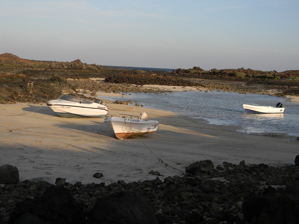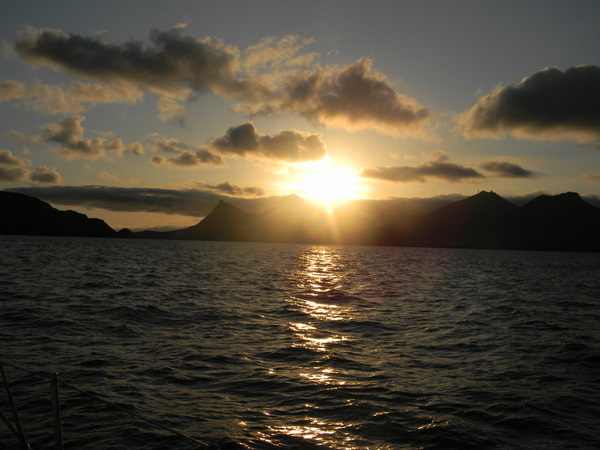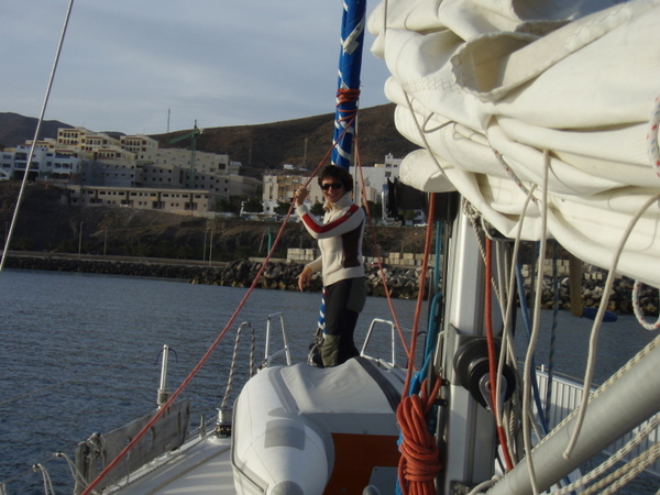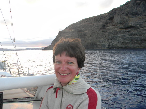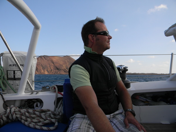 So vergeht ein Tag nach dem anderen, uns geht es ausgesprochen gut, täglich gibt es eine warme Mahlzeit und wir genießen die Zeit sehr. So sehr, dass, als endlich der Ruf „Land in Sicht“ erschallt, die Überlegung kurz im Raum steht, direkt nach Lanzarote weiterzusegeln. Aber nein, im letzten Tageslicht erreichen wir den Hafen und genehmigen uns einen „Anleger“ in Form eines Bieres in der Hafenbar, da die Randivåg verwaist ist. Doch als wir zurück zum Schiff kommen, sind Sven und Lisa schon da und laden uns ein. Was für ein schöner Empfang!