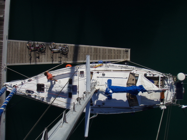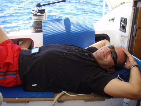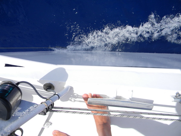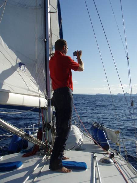 Ist es die Aufregung, dass wir 4 Tage Segeln vor uns haben oder dass der Kurs gleich nicht stimmt? Ich weiß es nicht, ich weiß nur, dass mir ziemlich übel ist. Die kurz zuvor eingenommene Tablette geht zusammen mit dem „Fischfutter“ über Bord, gut, dass wir noch ein Pflaster gegen Seekrankheit haben. Das wirkt ziemlich schnell und ab da müssen die Fische wieder selber nach Nahrung suchen.