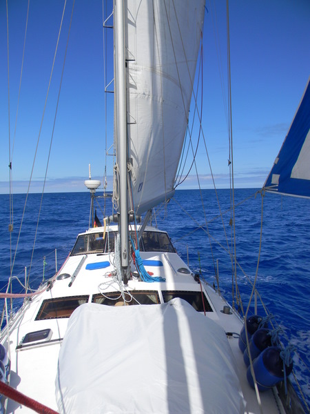 Nach diesem kleinen Intermezzo geht es dann aber wirklich los. Die Sonne strahlt warm vom Himmel – ein perfekter Tag. Fast. Der angesagte Wind aus Nord kommt in Wirklichkeit aus Südwest, also aus der Richtung, in die wir wollen. Kursänderung, 180° – direkt nach Süden. Wird schon drehen, bevor wir in Afrika sind… Tatsächlich, die Vorhersage hat dann doch recht und wir können Kurs auf Porto Santo nehmen.