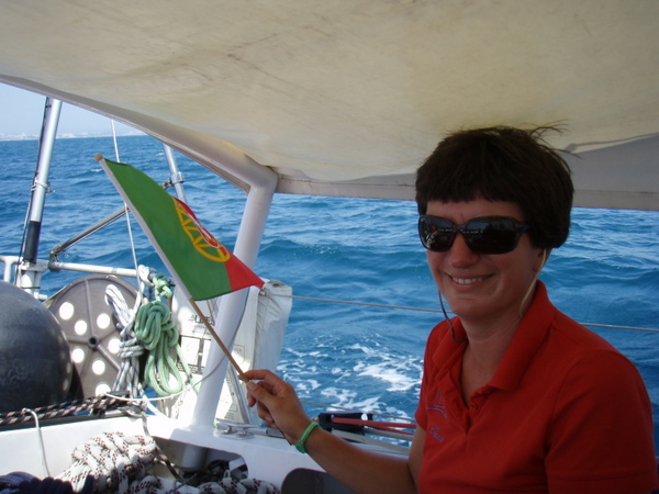 Endlich ist es soweit: Wir setzen wieder Segel mit Kurs 240°, direkt nach Porto Santo bei Madeira. Vilamoura als Absprunghafen auszusuchen war eine gute Entscheidung. Hier ist es so laut und touristisch, so dass wir froh sind, endlich wegzukommen. Doch unserem Motor gefällt es hier scheinbar, er streikt erstmal. Na toll. Florian findet aber gleich die Ursache, der Dieselfilter ist zu und er muss nur den Schalter auf den 2. Filter umstellen. Schon schnurrt unser Ford-Motor wieder brav.