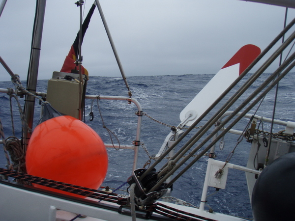 Vor allem die Freiwache hat ein ganz besonderes „Klangerlebnis“: während das Schiff in die Wellen eintaucht, hört es sich im Innern so an, als würde unsere OOROS die Treppe runterfallen. Wüssten wir nicht, dass unser Schiff so stark und zuverlässig ist, könnte uns angst und bang werden. Die Geräusche bei starkem Seegang sind wirklich vielfältig. Zu den lauten Tönen kommt auch noch das Wispern und Murmeln dazu. Ich fange langsam wirklich an, an Klabautermänner zu glauben! Dazwischen immer wieder ein echtes Fluchen, wenn wieder mal eine Welle über meinen Kapitän hergefallen ist.