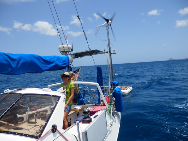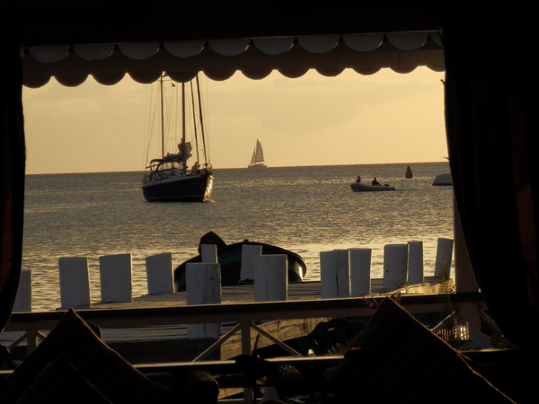 Die Weiterfahrt am nächsten Tag birgt auch so ihre Tücken. Wir wollen nach Bequia, der nördlichsten Insel der Grenadinen, als beim Reffen der Genua die Leine klemmt. Chaos, der Wind wird immer stärker und wir können das Segel nicht reffen, geschweige denn bergen. Nach unzähligen Flüchen, ziehen und zerren klappt es dann endlich doch und wir kommen gut in der Admirality Bay auf Bequia an. Hier liegen wir jetzt seit ein paar Tagen an der Muring, morgen soll es weitergehen. Vorausgesetzt, Florian´s Knie ist bis dahin abgeschwollen. Vom Purzelbaum und dem Segelchaos ist es ziemlich mitgenommen, wohingegen die Striemen am Bauch, die ausschauen wie vom Kampf mit dem Grizzly, in Wirklichkeit aber Andenken an die unglückliche Dinghianlandung sind, gut verheilen.