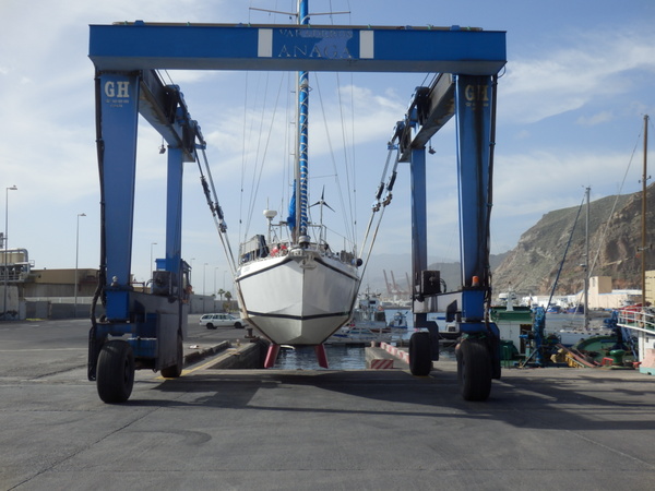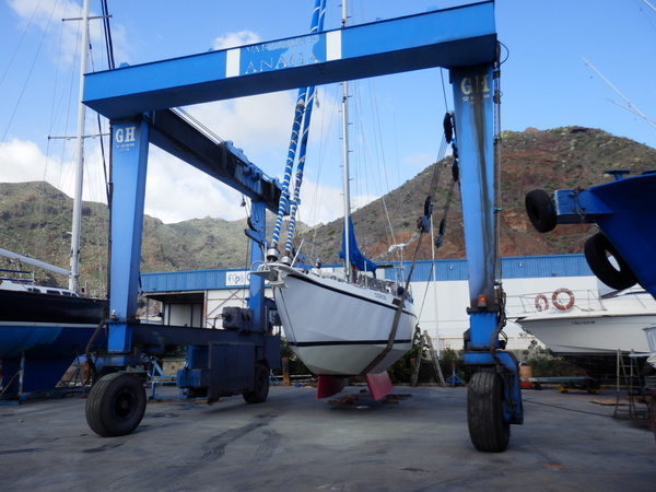 Auch die Logge funktioniert seit La Palma nicht mehr, ein Austausch ist aber nur an Land möglich, da sie ja durch den Schiffsboden ins Wasser ragt. Das Problem ist allerdings, dass diese Logge schon seit 1994 nicht mehr gebaut wird und die neuen Loggen wesentlich dünner sind. Oh Mann, was kommt da wohl auf uns zu? Aber wir haben großes Glück, in einem der Yachtausstatter ist in einer Kruschelkiste noch eine Logge zu finden, die bei uns passt. Tja, hat die kurzfristige Bemalung als Schweinchen doch was gebracht!